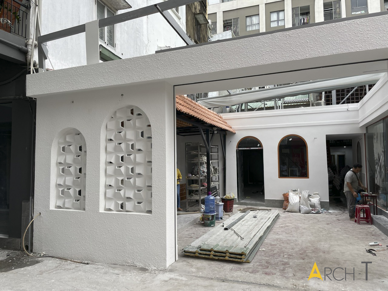 Đội ngũ thi công tại Arch-T duy trì tiến độ, giám sát chặt chẽ từng hạng mục nhằm đảm bảo công trình được hoàn thiện đúng theo bản vẽ. Các chi tiết trang trí, logo cùng hệ thống chiếu sáng được căn chỉnh kỹ càng để đạt được sự hài hòa nhất.